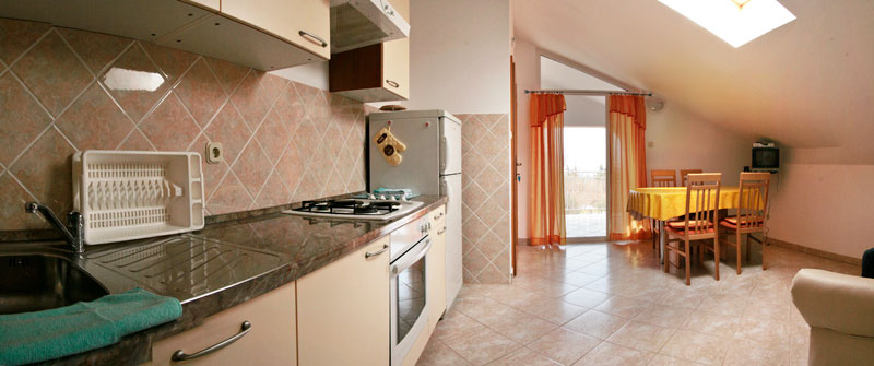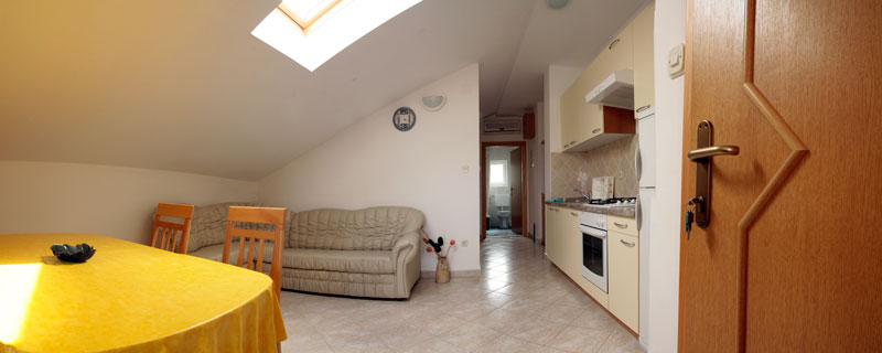 Apartment description: double bed room with laminate floors, bathroom with toilet and shower, living room, dining room and kitchen as a single space with ceramic tiles on the floor and balcony exit, bed linen, sheets and towels at disposal, air-condition, TV
